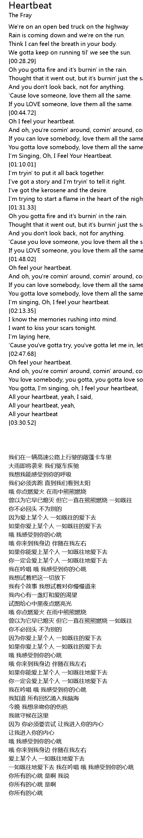 | [02:08.00] | I'm singing, Oh, I feel your heartbeat. |