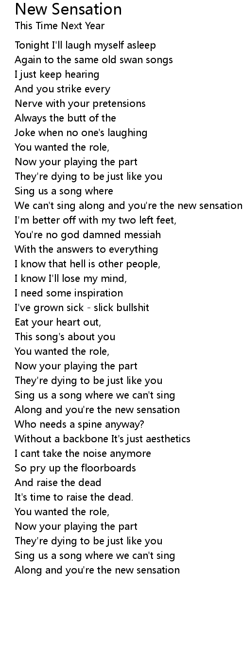 Along and you're the new sensation |