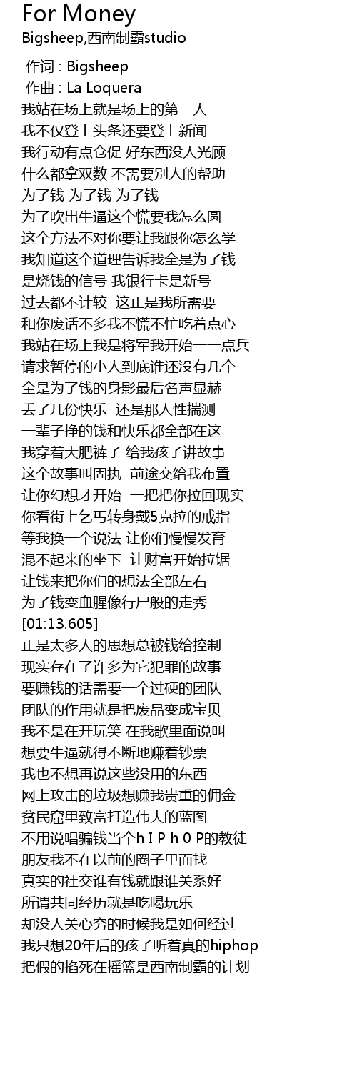 | [00:21.157] | 为了钱 为了钱 为了钱 |