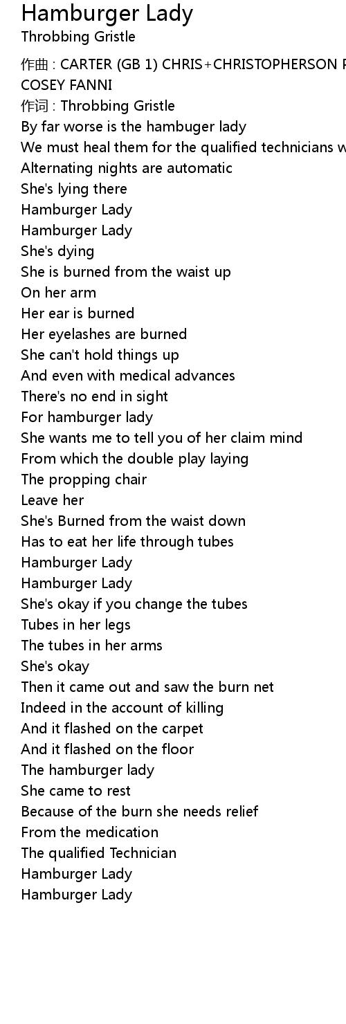 | Song | Hamburger Lady |