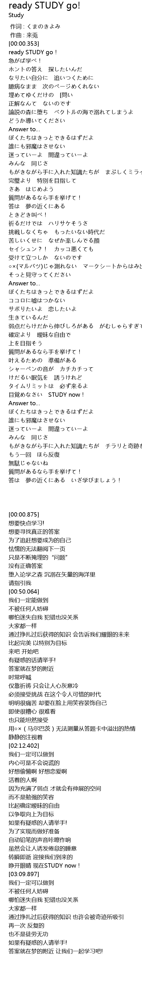 | [03:06.788] | 目覚めなさい STUDY now! |