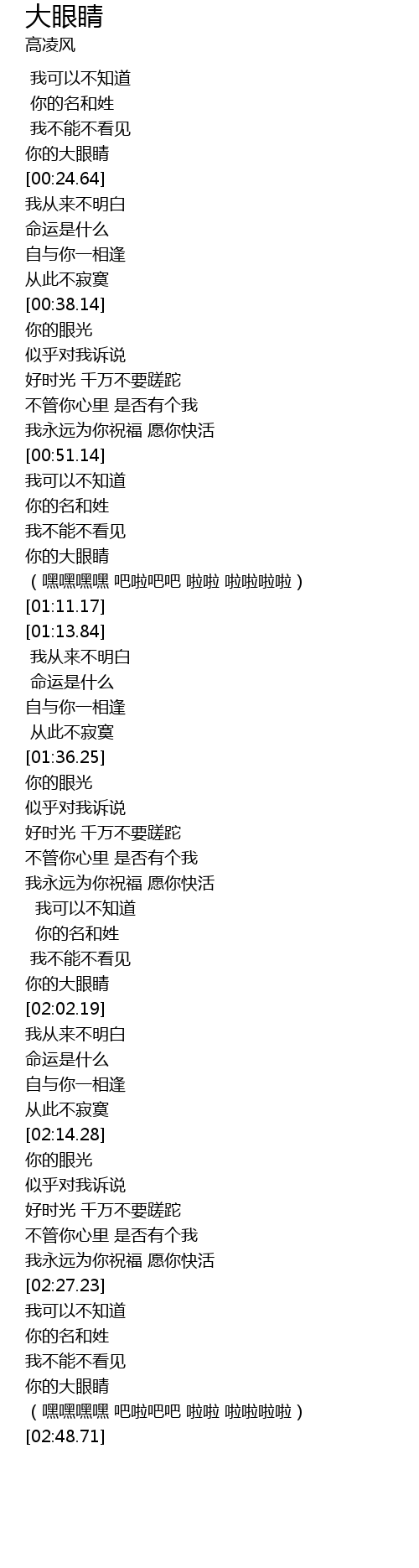 | [01:01.03] | 你的大眼睛 |