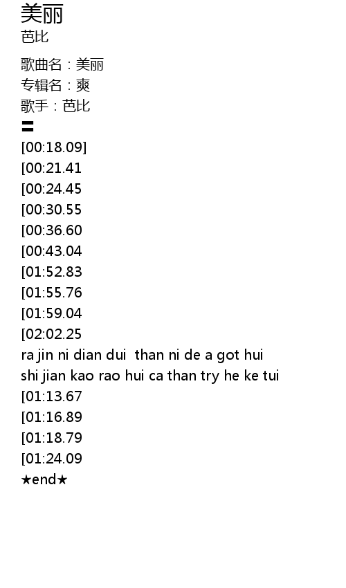 | [00:10.40] | 歌手:芭比 |