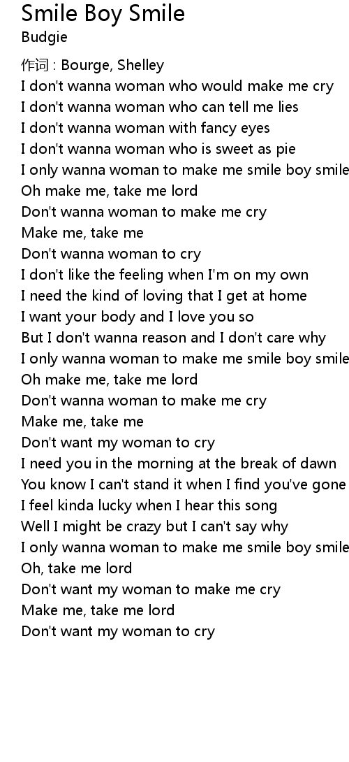 | I only wanna woman to make me smile boy smile | |