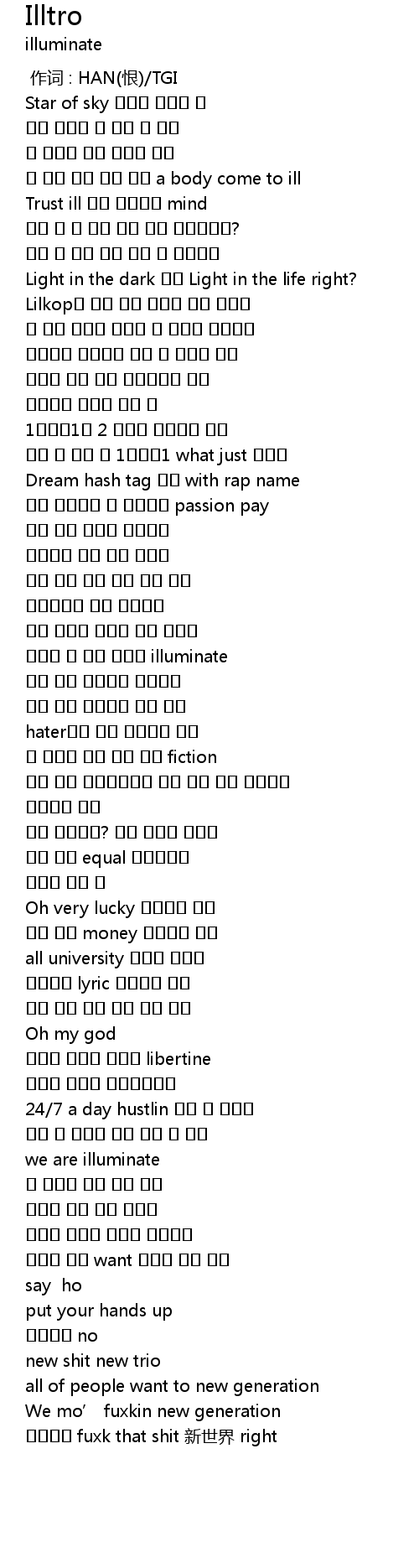 | [01:18.38] | hater들은 비켜 일루미는 지켜 |
