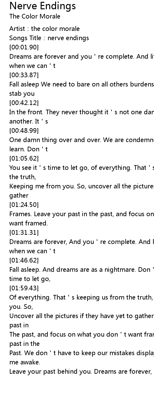 | [00:00.46] | Artist:the color morale |