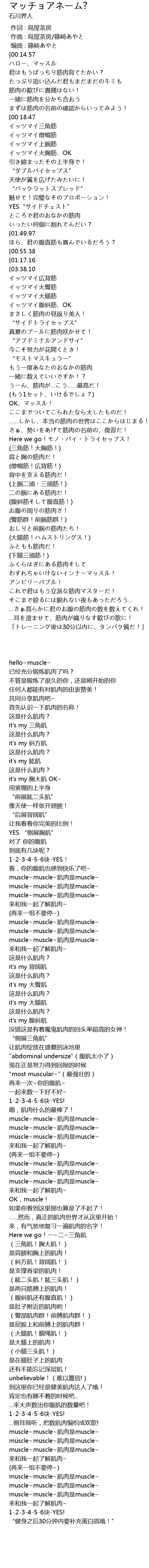 | [00:01.08] | ハロー、マッスル |