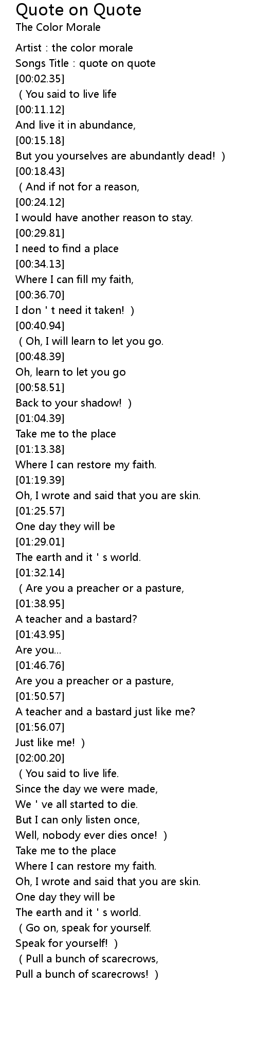 | [00:01.35] | Songs Title: quote on quote |