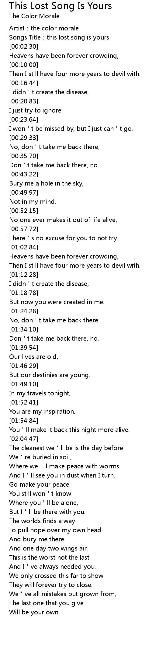 | [00:26.14] | I won't be missed by, but I just can't go. |