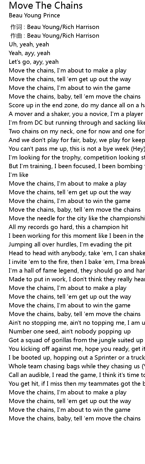 | [00:52.49] | Move the chains, baby, tell 'em move the chains |
