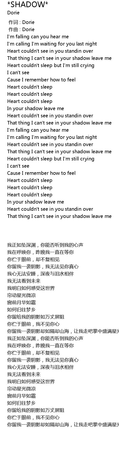 | [00:59.645] | That thing I can' t see in your shadow leave me |