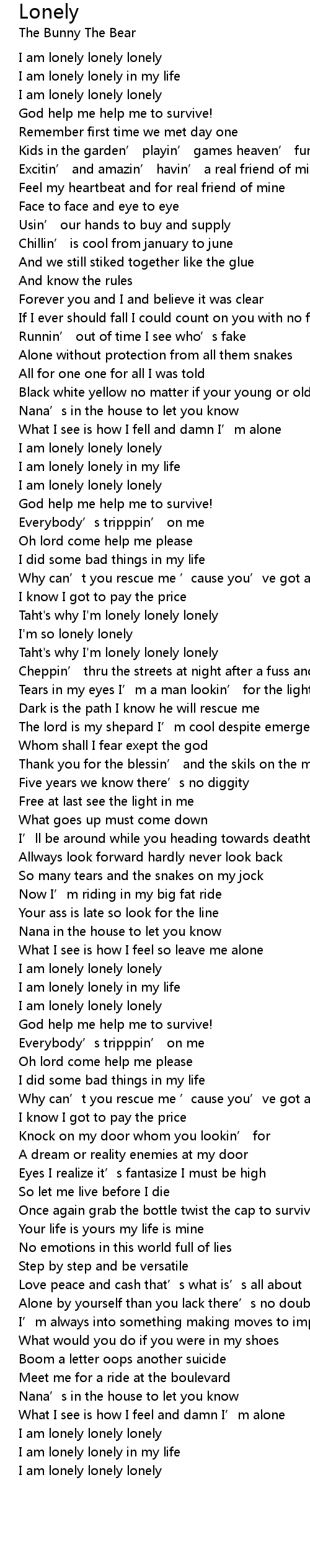 | I am lonely lonely lonely | |