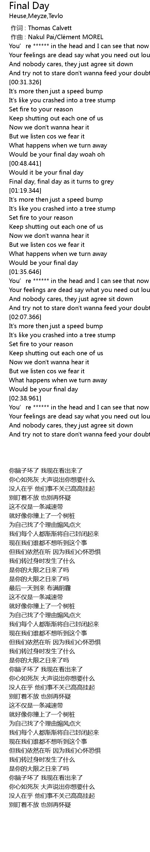 | [02:43.148] | Your feelings are dead say what you need out loud |