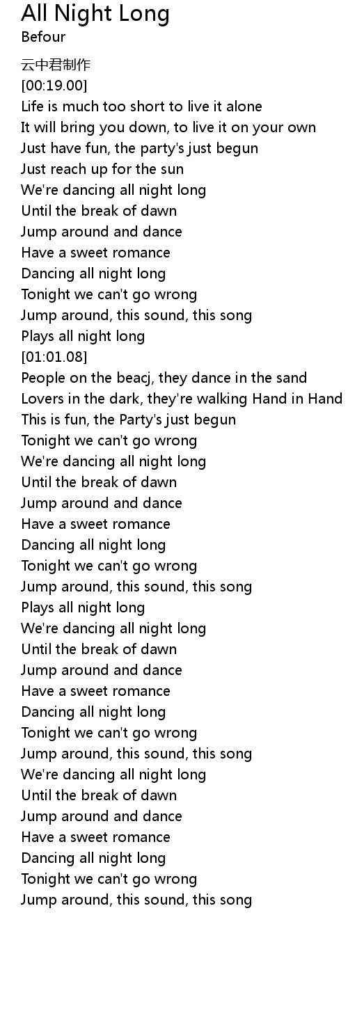 | [00:40.37] | We' re dancing all night long |