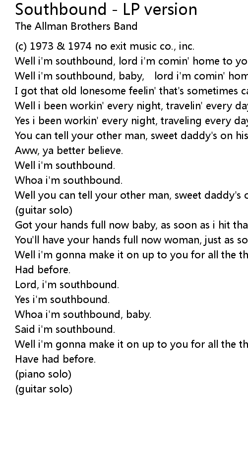 | Well i'm southbound, baby, lord i'm comin' home to you. | |