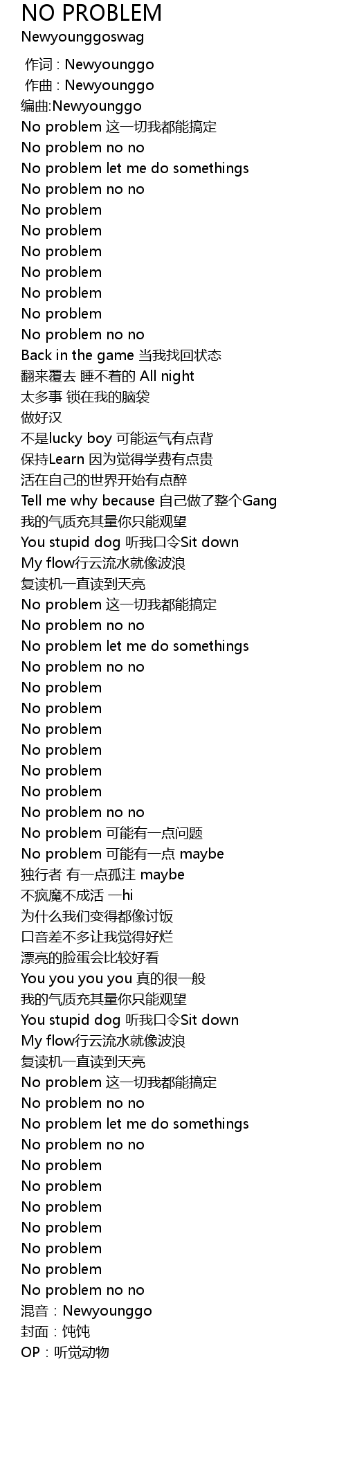 | [00:19.83] | No problem no no |