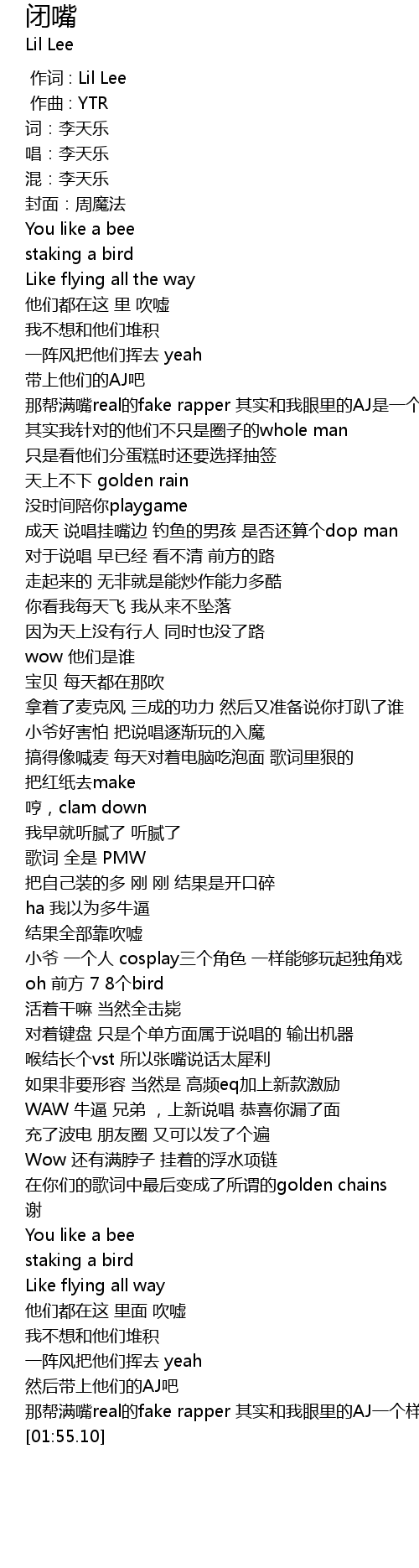| [01:52.10] | na bang man zui real de fake rapper qi shi he wo yan li de AJ yi ge yang |