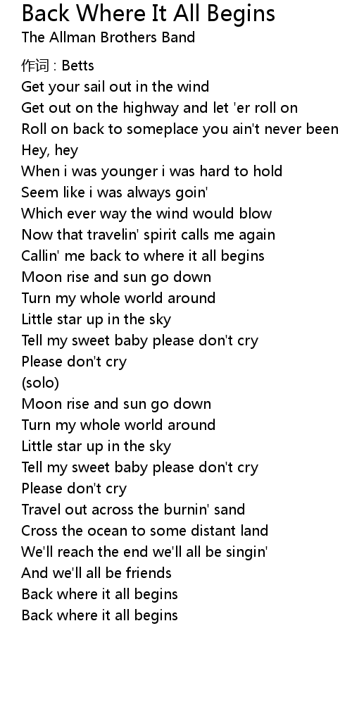 | Callin' me back to where it all begins | |