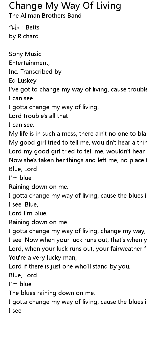 | I' ve got to change my way of living, cause trouble' s all that | |