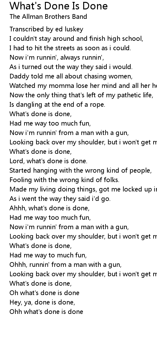 Ohh what's done is done |
