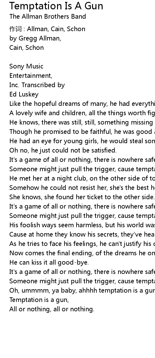 | 作词 : Allman, Cain, Schon | |