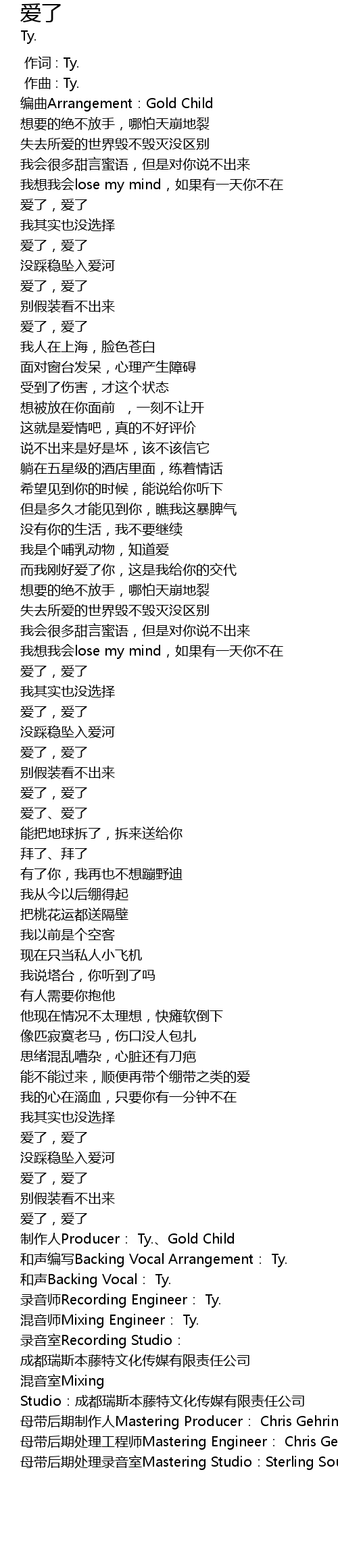 | [03:10.800] | hun yin shi Mixing Engineer: Ty. |