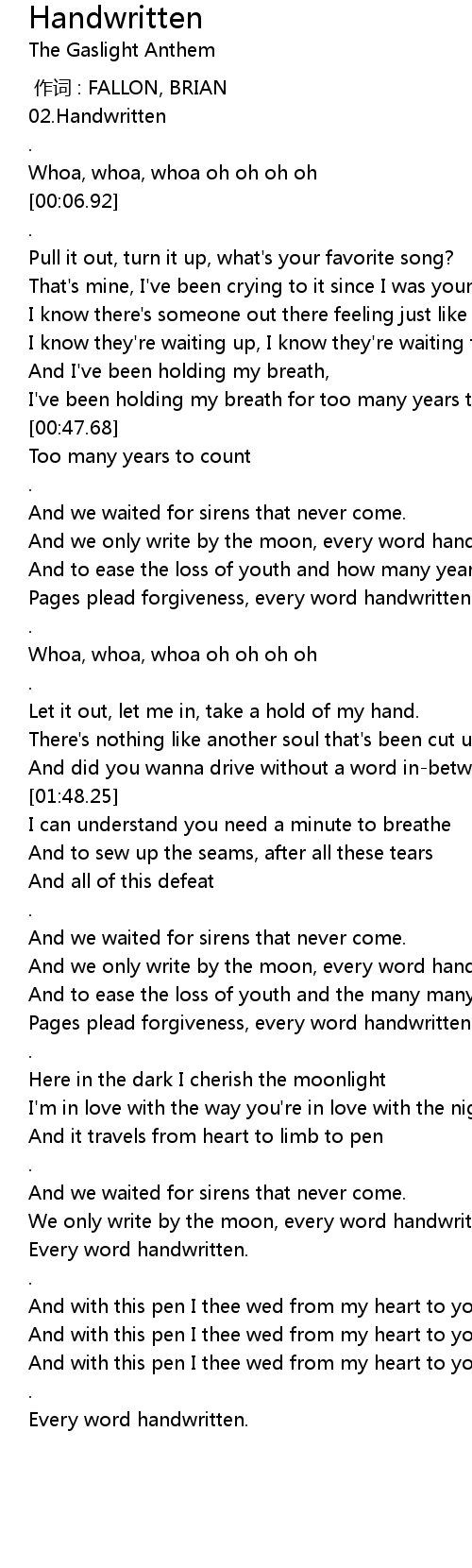 | [03:06.34] | Every word handwritten. |