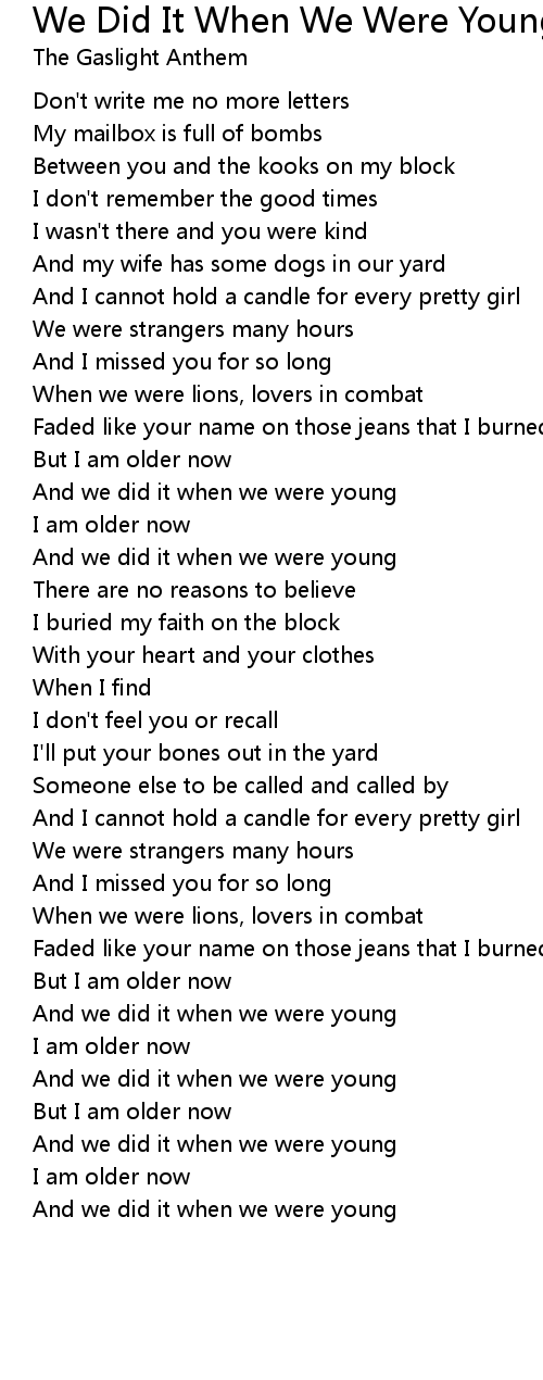 And we did it when we were young |
