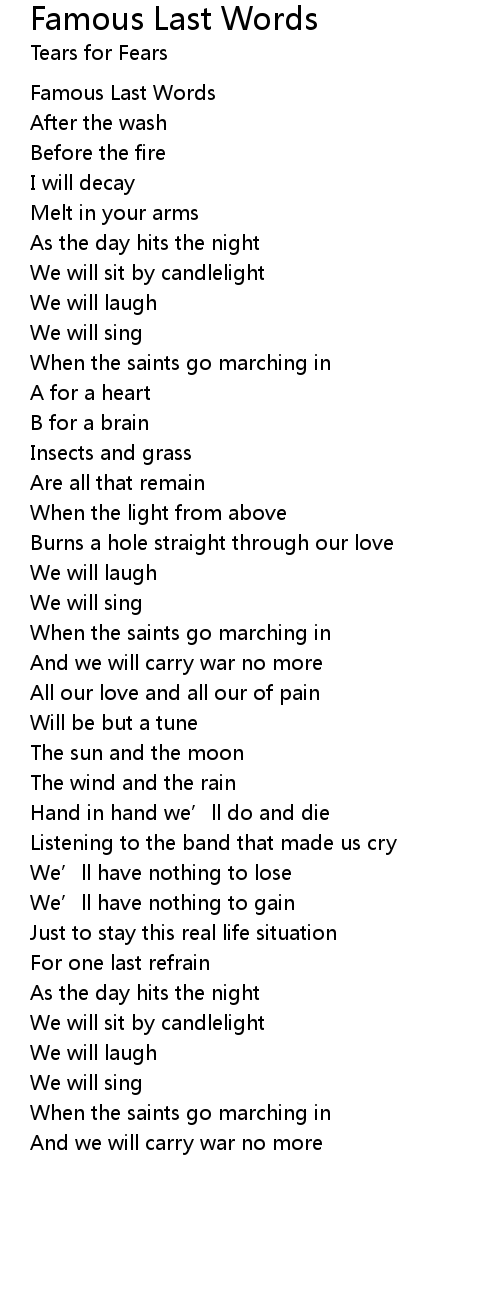 | [00:06.96] | Famous Last Words |