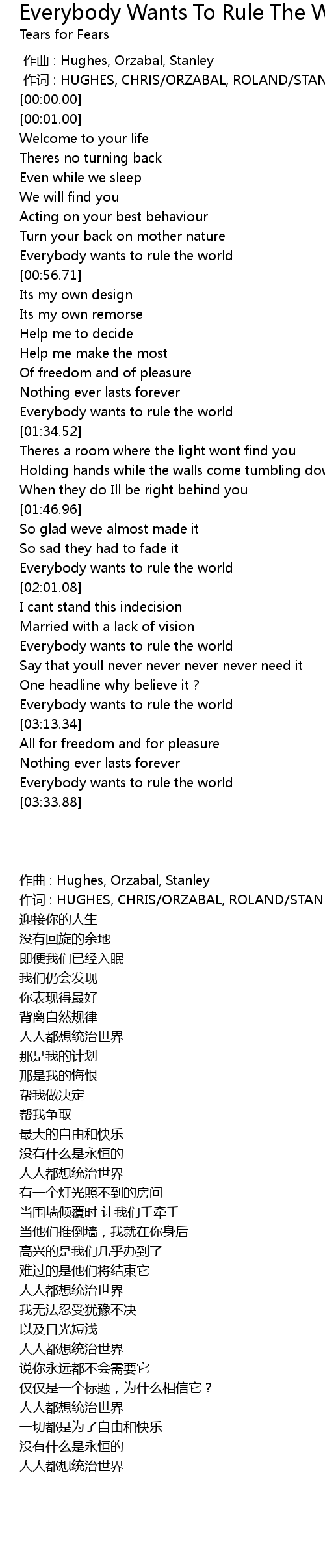 | [02:53.90] | Everybody wants to rule the world |