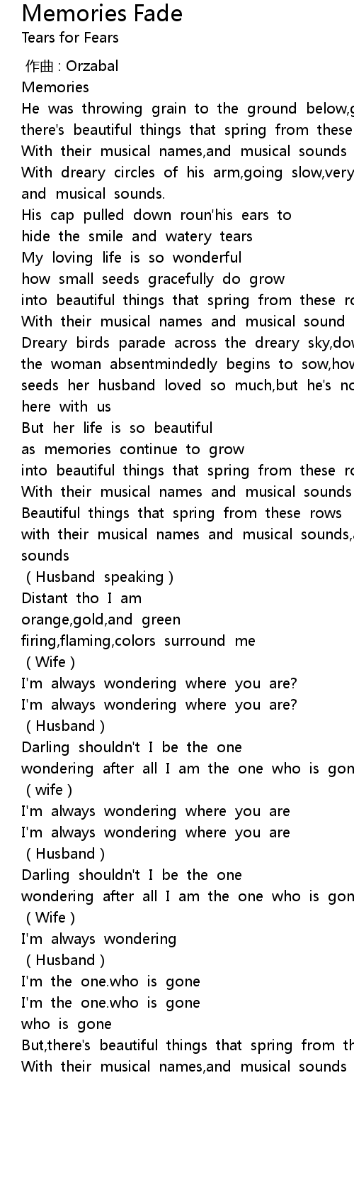 | Song | Memories Fade |