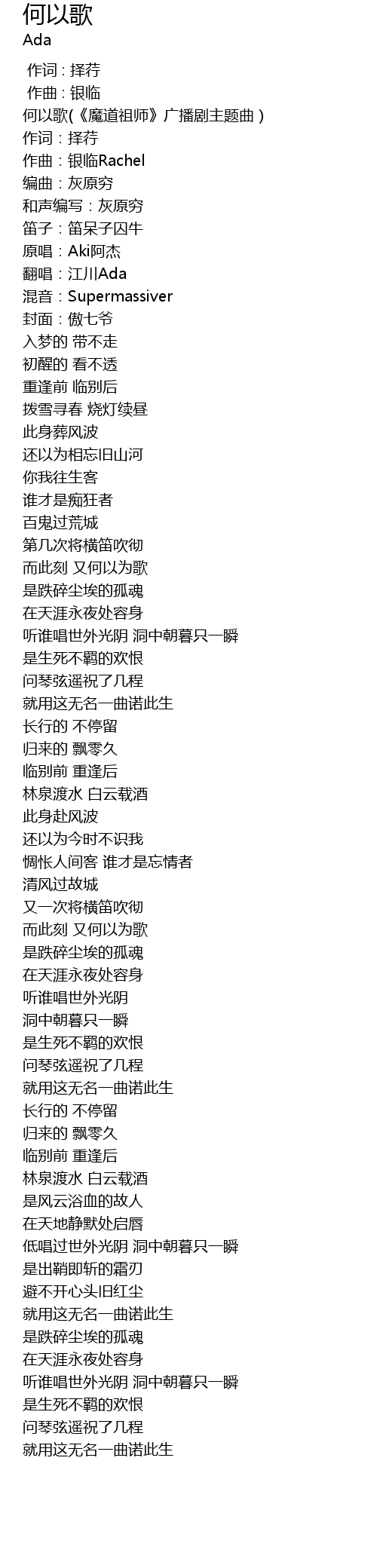 | [00:00.00] | 何以歌(《魔道祖师》广播剧主题曲) |
