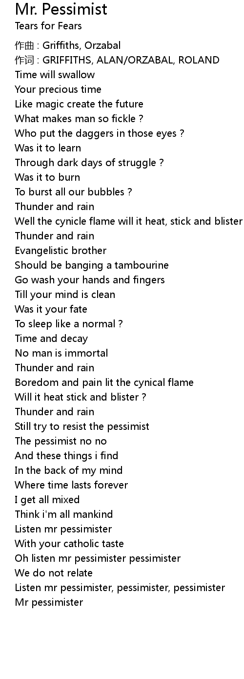 | Oh listen mr pessimister pessimister | |