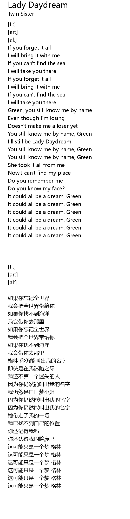 I'll still be Lady Daydream |