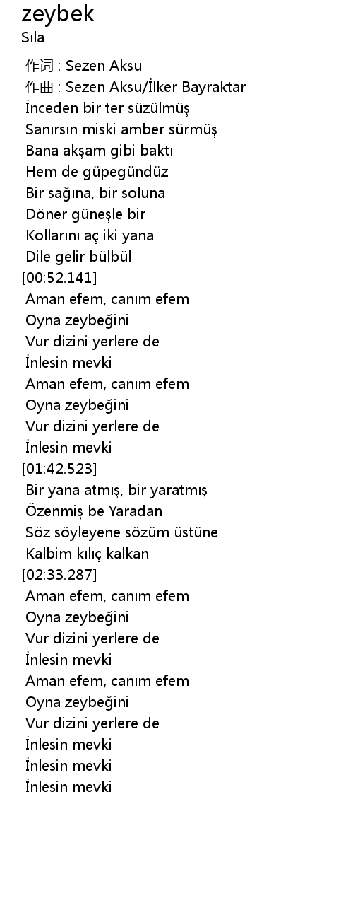 | [00:01.000] | zuo qu : Sezen Aksu lker Bayraktar |