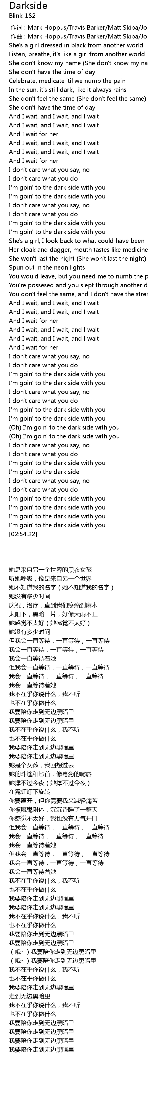 | [00:00.00] | zuò cí : Mark Hoppus Travis Barker Matt Skiba John Feldmann |