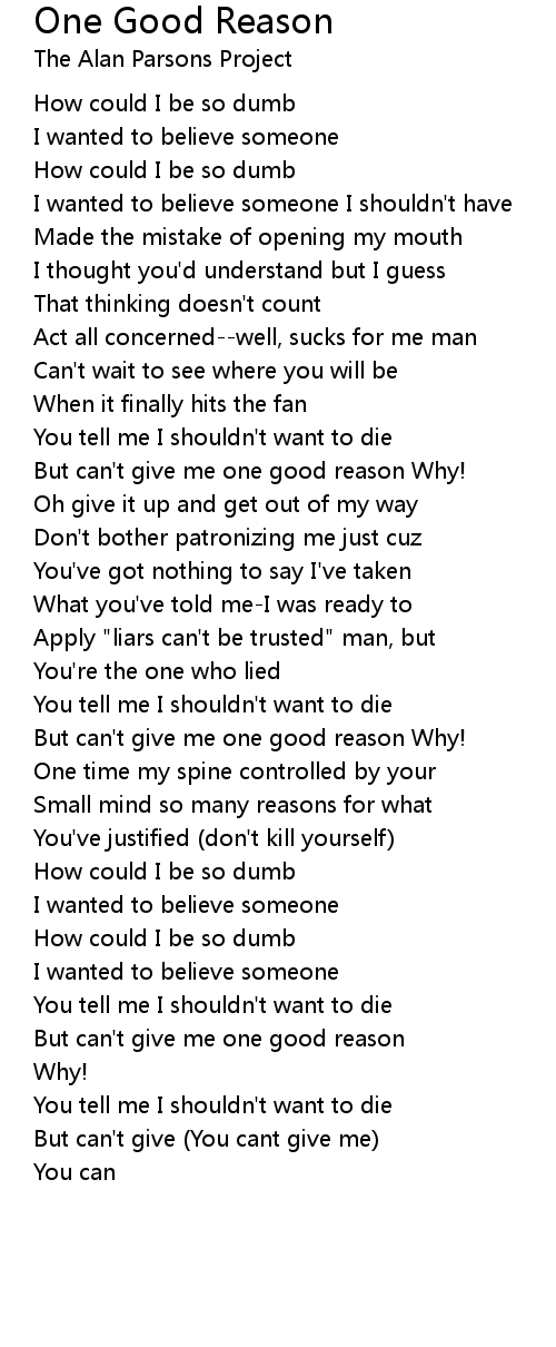 But can't give me one good reason |