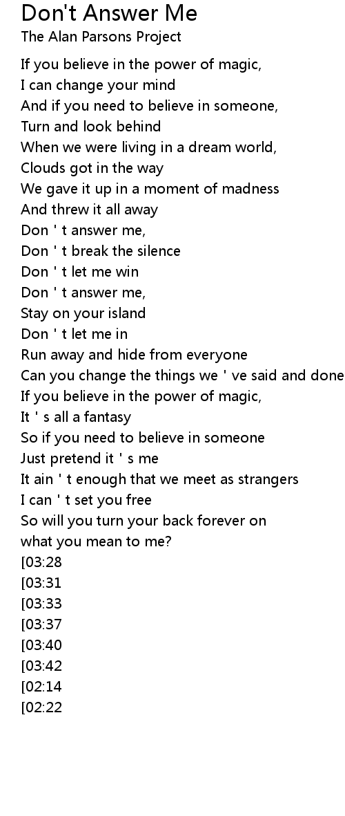 | [04:02][03:37][03:12][02:05] | Don't answer me, |