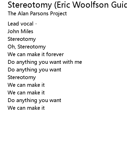 | Song | Stereotomy (Eric Woolfson Guide Vocal) - Guide Vocal |