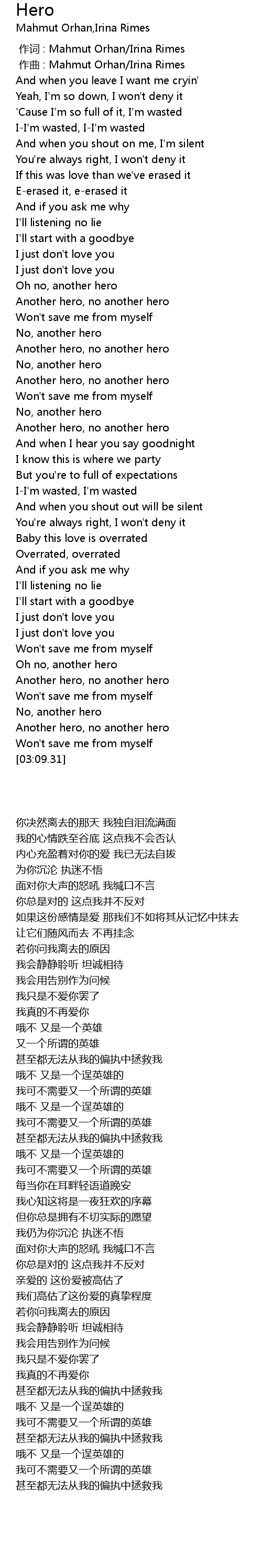 | [00:00.00] | 作词 : Mahmut Orhan/Irina Rimes |