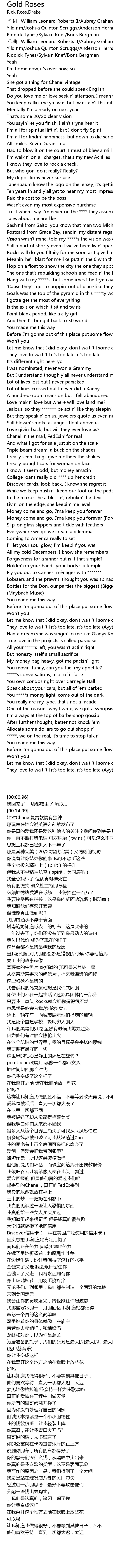 | [00:00.48] | 作曲 : William Leonard Roberts II/Aubrey Graham/Ozan Yildirim/Joshua Quinton Scruggs/Anderson Hernandez/Leon Thomas III/Khristopher Riddick-Tynes/Sylvain Krief/Boris Bergman |
