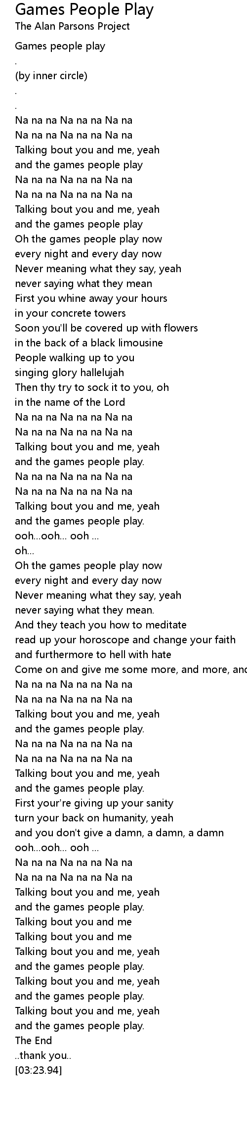 and the games people play |