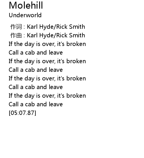 | [00:00.00] | 作词 : Karl Hyde/Rick Smith |