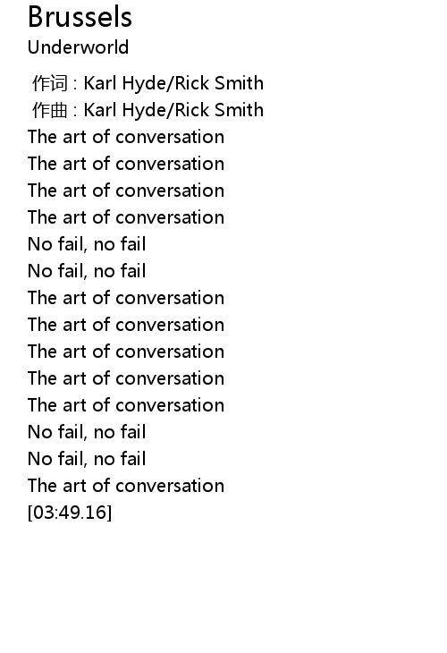 | [00:00.00] | 作词 : Karl Hyde/Rick Smith |