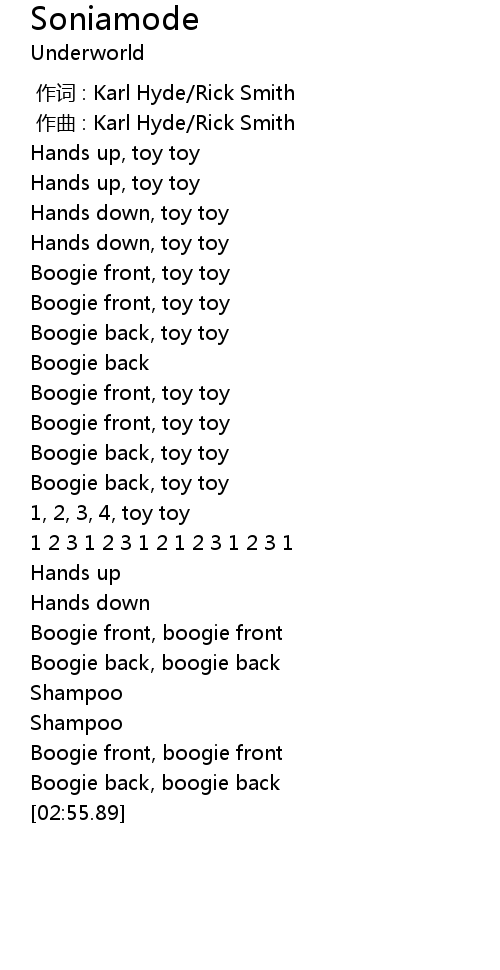 | [00:00.00] | 作词 : Karl Hyde/Rick Smith |