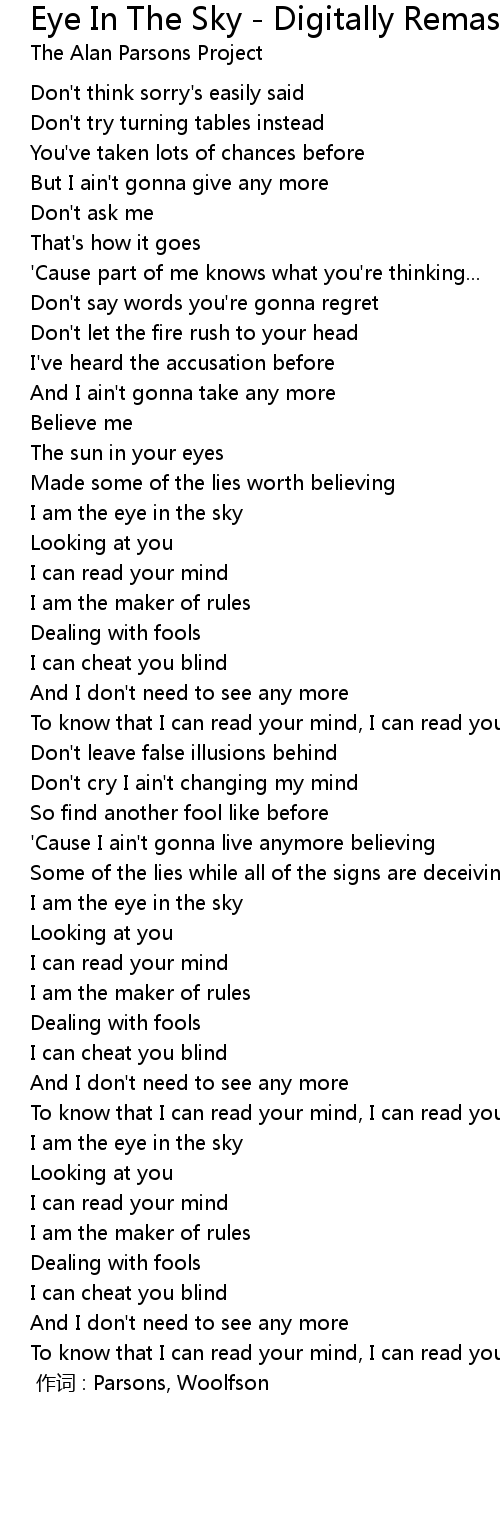 | [00:00.00] | 作词 : Parsons, Woolfson |