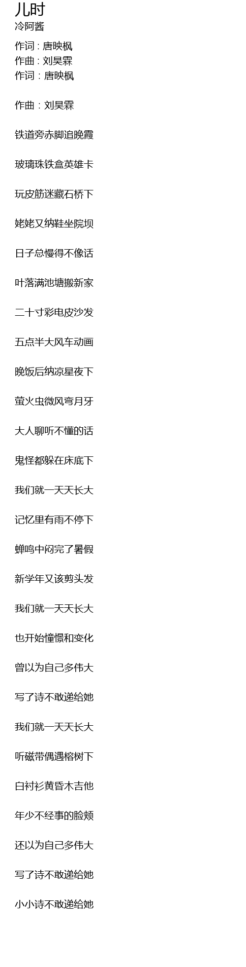 | wǒ men jiù yì tiān tiān cháng dà | |