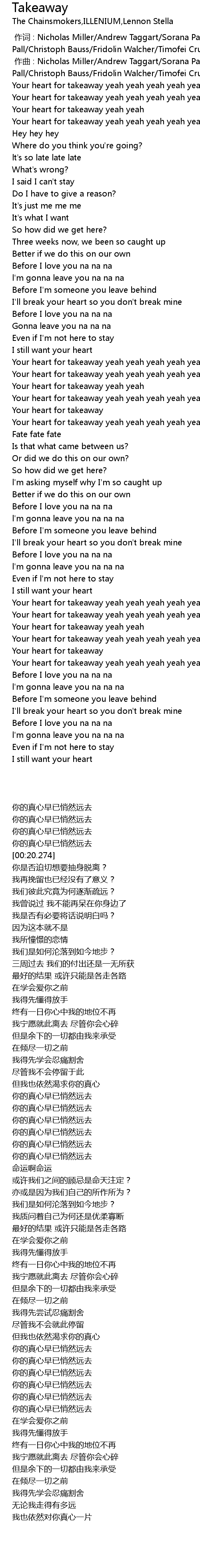 | [00:14.039] | Your heart for takeaway yeah yeah yeah yeah yeah |
