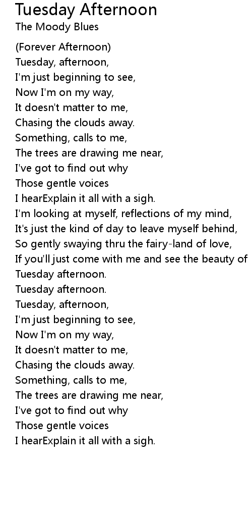 Tuesday, afternoon, |