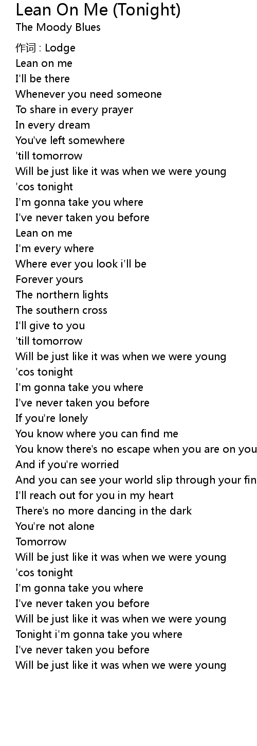 | Song | Lean On Me (Tonight) |